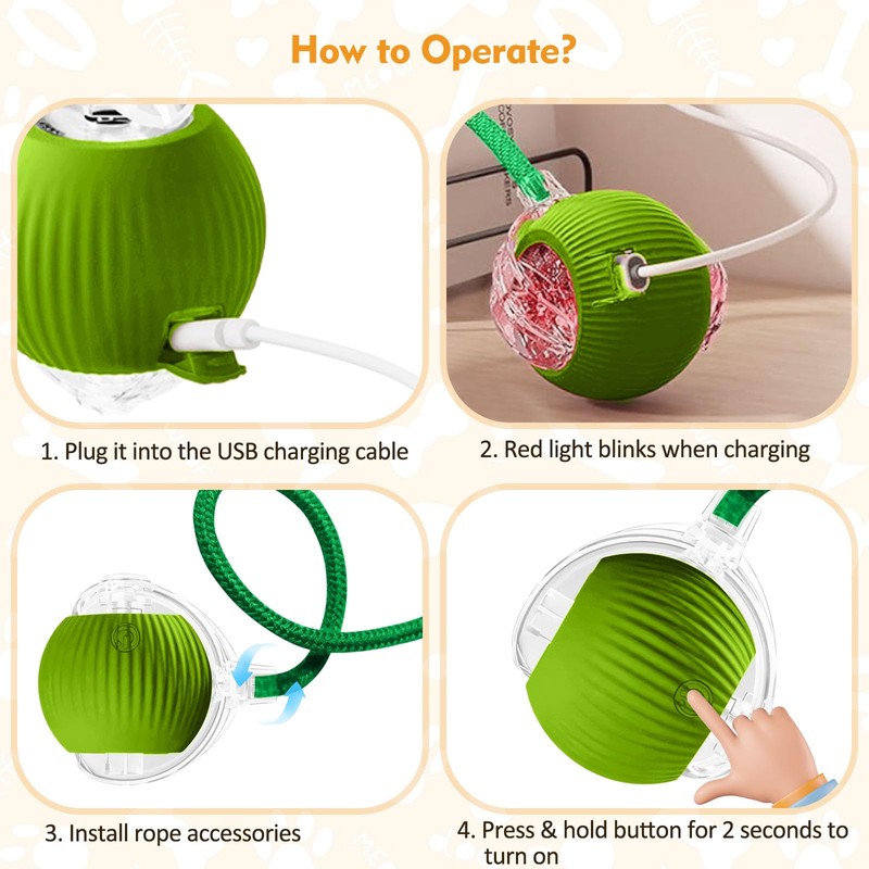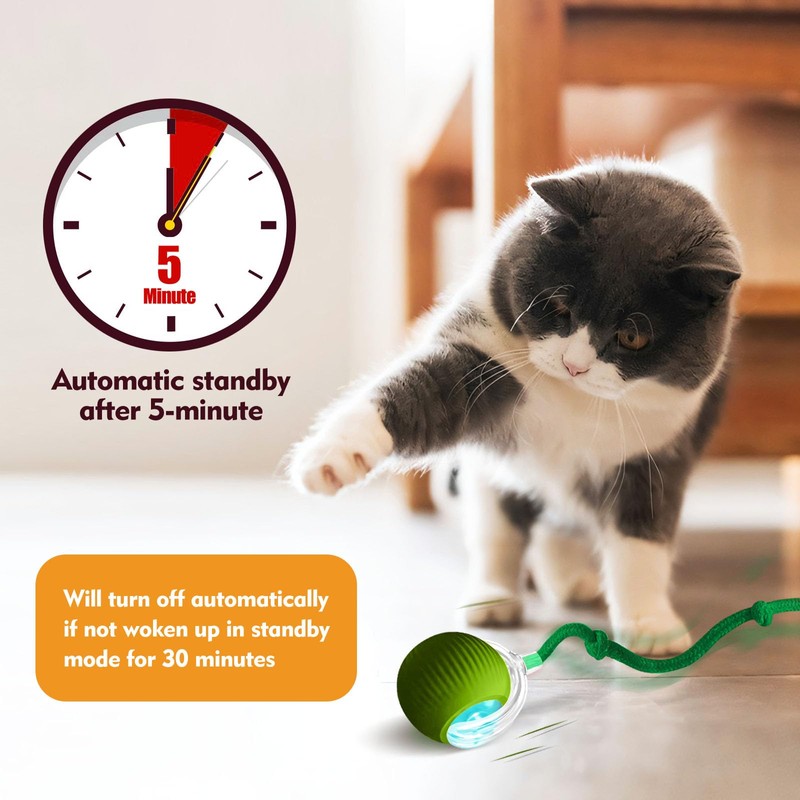 - 【Interactive Cat Toy with Smart Motion 】 Engages your feline’s instincts with unpredictable rolling, keeping indoor cats mentally stimulated and physically active for hours
