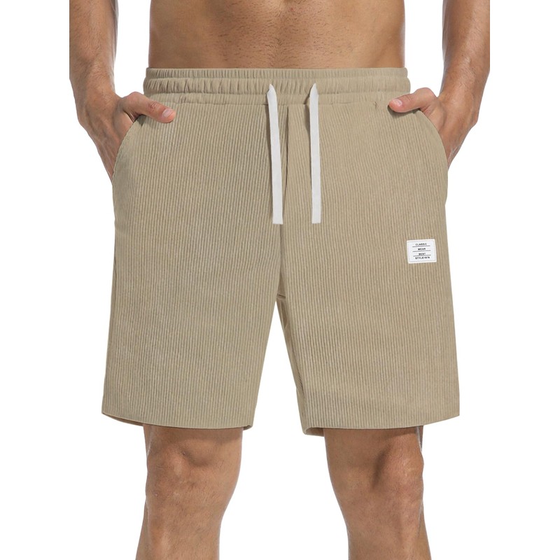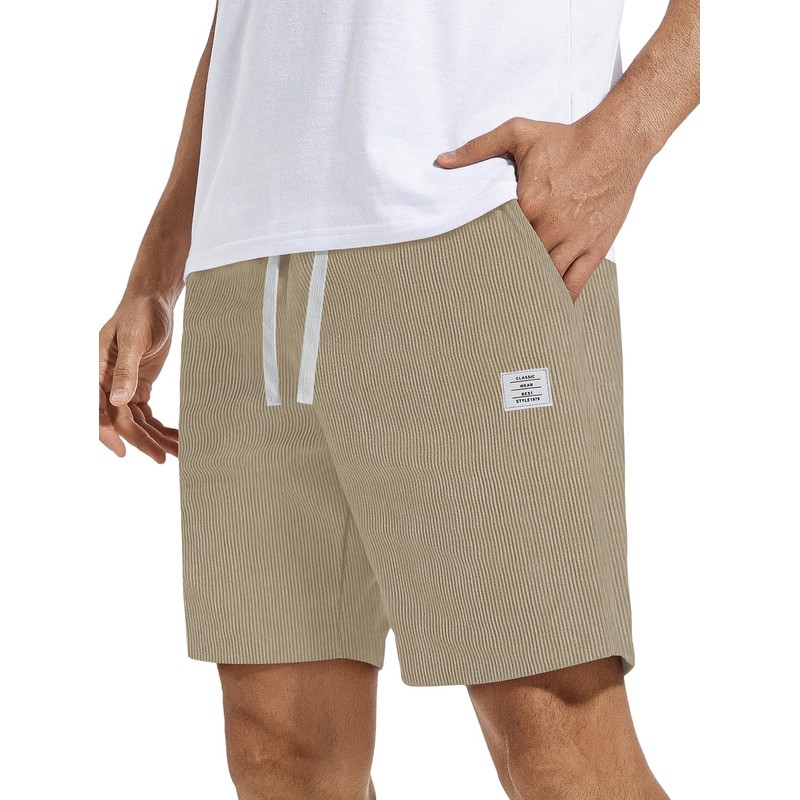 DOWMQ Men's Corduroy Shorts Casual Elastic Drawstring Lightweight Summer Beach Shorts with Pockets Khaki, M