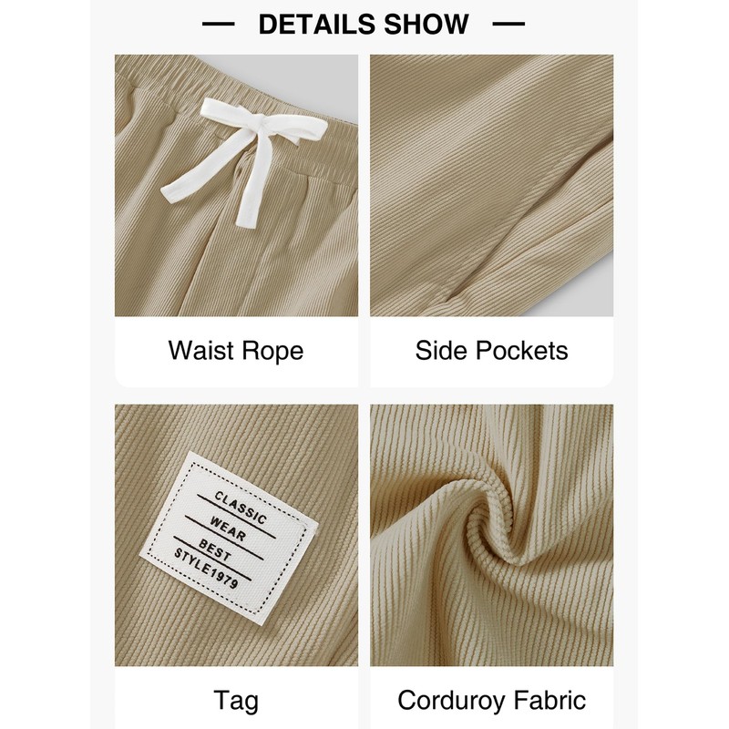 - Unique Label Design: Our corduroy shorts use a unique label design, which makes our matching more distinctive and creates a better atmosphere.