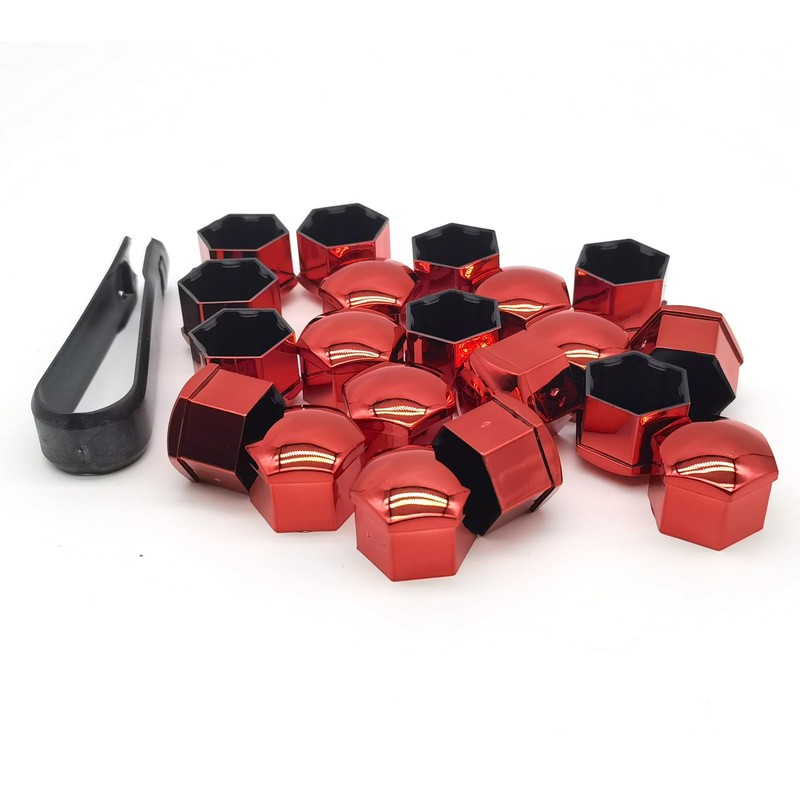 Downhill 20 PCS Lug Nut Covers, Wheel Nut Caps, Hexagonal Wheel Center Bolt Caps with Removal Tool, 17mm Wheel Nut Screw Bolt Protection Kit, Automotive Exterior Accessories, for Most Vehicles (Red)