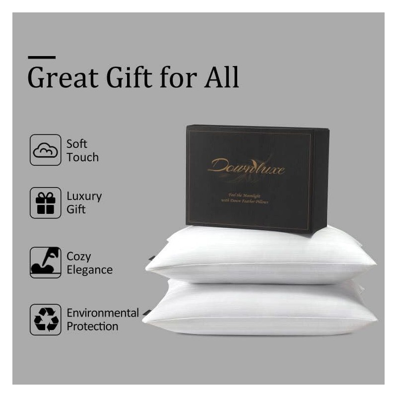 downluxe Goose Feather and Down Pillows - Hotel Collection Feather Pillows Set of 2 for Back, Stomach or Side Sleepers, Queen Size (20"x28")