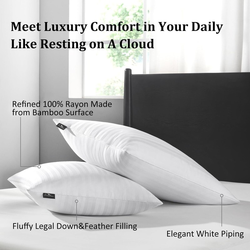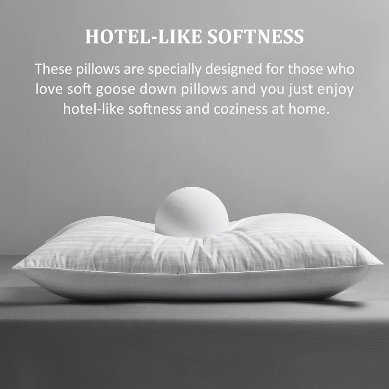 - 【Super Soft Cover】 - Our GOOSE feather pillows are very soft with JACQUARD quality viscose derived from cover. The soft, breathable and delicate surface texture is skin-friendly.