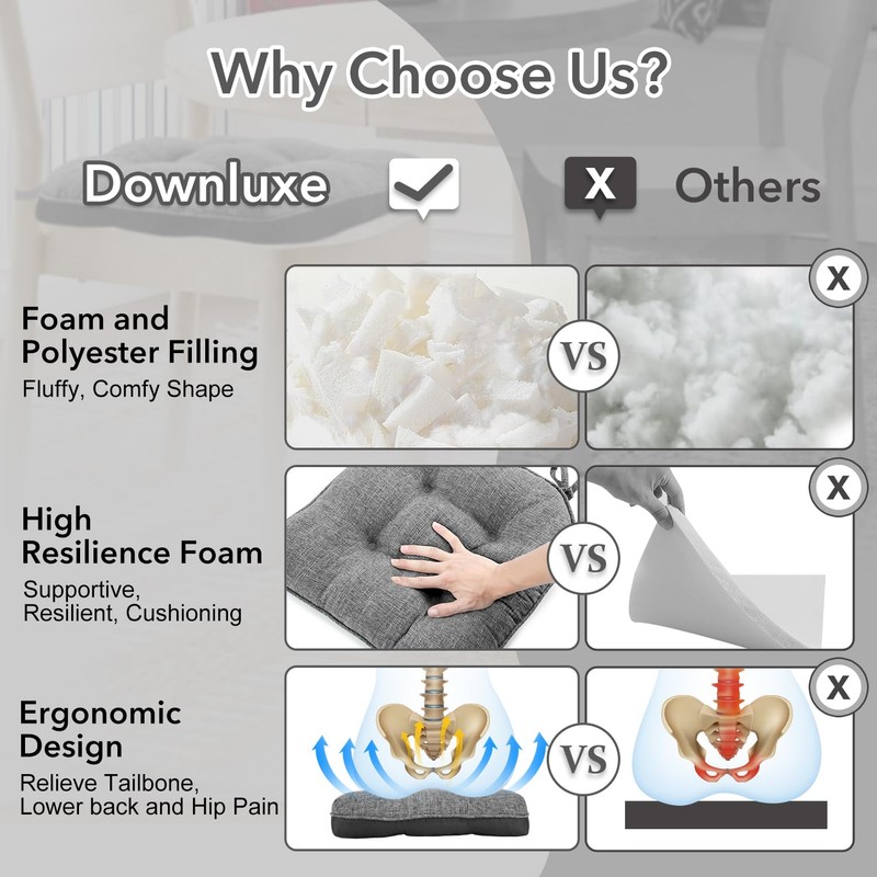 - Stay in Place: Attached ties and non-slip silicone bottom can double keep the seat cushion in place absolutely to prevent it from sliding. You don't need to adjust the dining chair cushions many times and just concentrate on enjoying your life