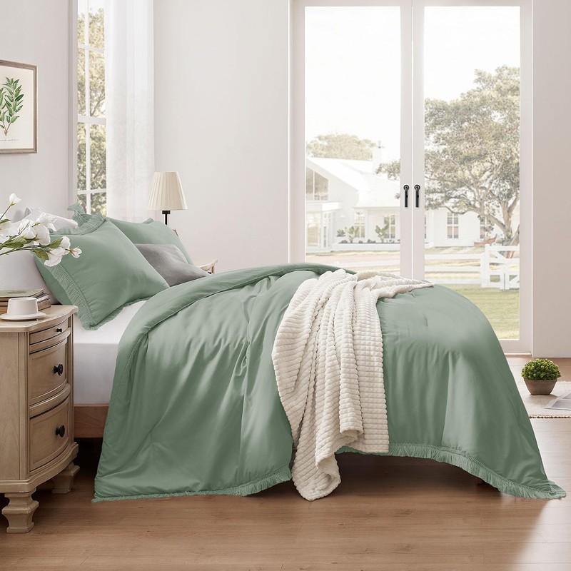 - What You Will Get: Boho twin comforter set includes: 1 sage green comforter (68" x 88") and matching 1 tassel pillowsham (20" x 26"). There might be some wrinkles when you receive it. You can expose it in the sunlight and tap it gently, then it will fluff up