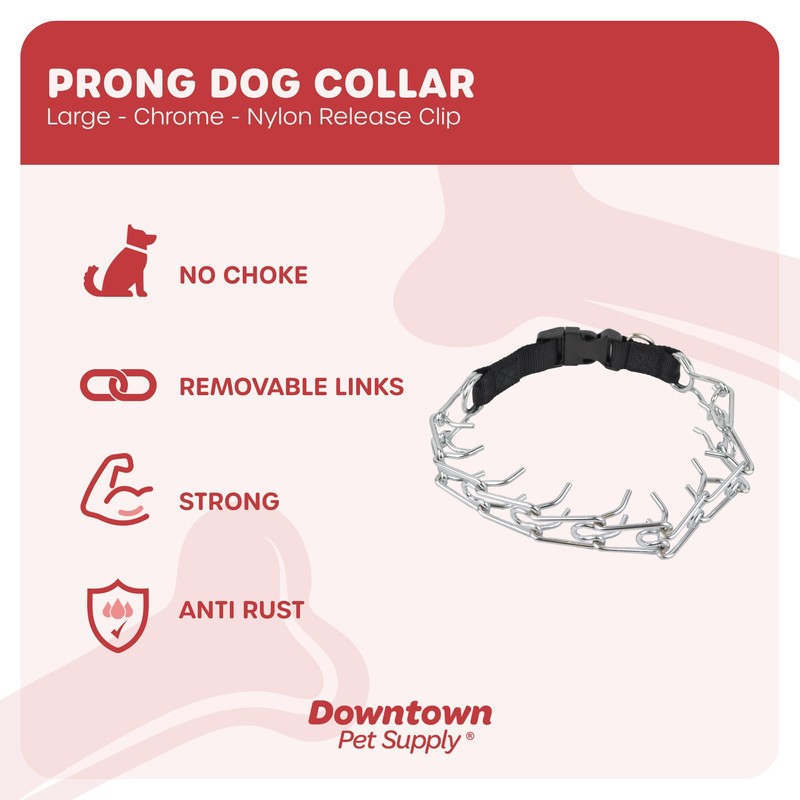 Downtown Pet Supply Chrome Plated/Nylon Prong Collar for Dogs, Large - Adjustable, No-Choke and No Pull Dog Collar with Removable Links - Pinch Collar for Dogs Over 50 lbs and 22" Neck Width