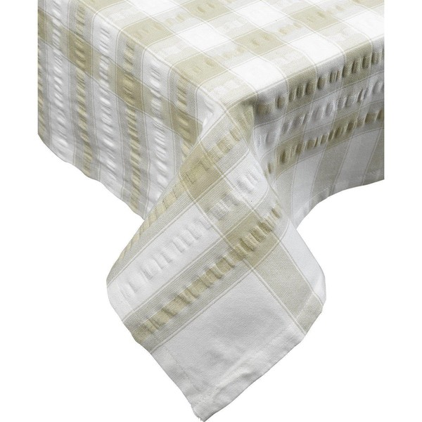 Downview Seersucker Check Cotton Tablecloth 36 x 36 Natural