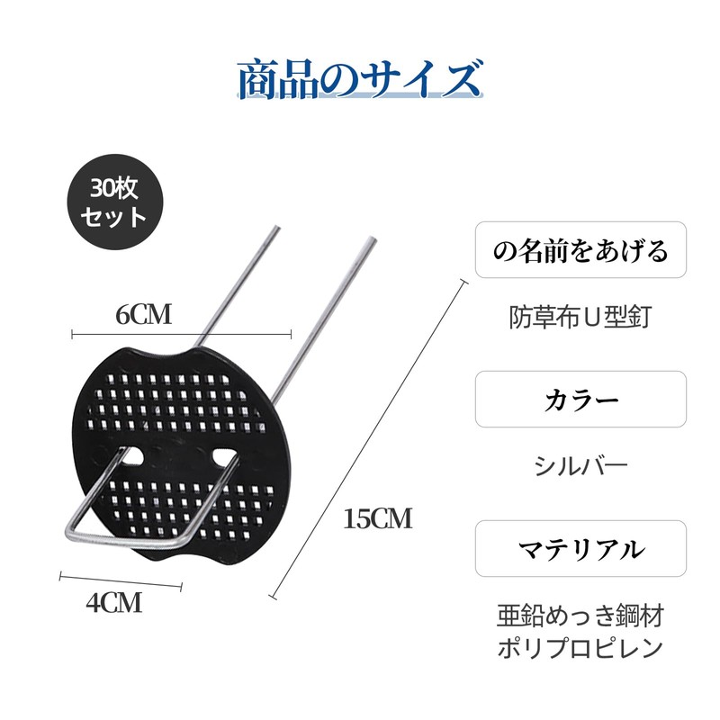 - Product Specifications: You will receive 30 u-pin stakes and 30 black spacers. upin stakes size about 15*4cm, galvanized steel diameter: 2.5mm. With stakes and spacers, the landscape fabric will be more secure in your garden and make weeding work more effective