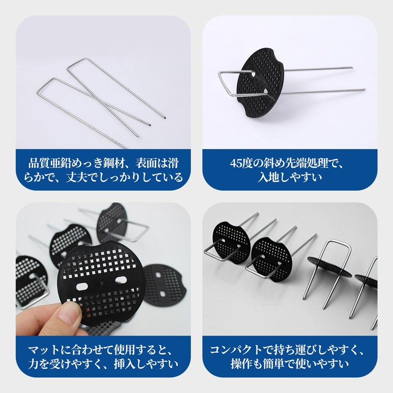 - 【u-pin stakes】This u-pin stake draws the soil and quickly fix it to the ground. In addition, it comes with a black plastic pad for extra security. U-shaped nail stakes can also prevent soil from seeping and ventilation. Angled stakes can be adjusted to fit the width needed for your home project
