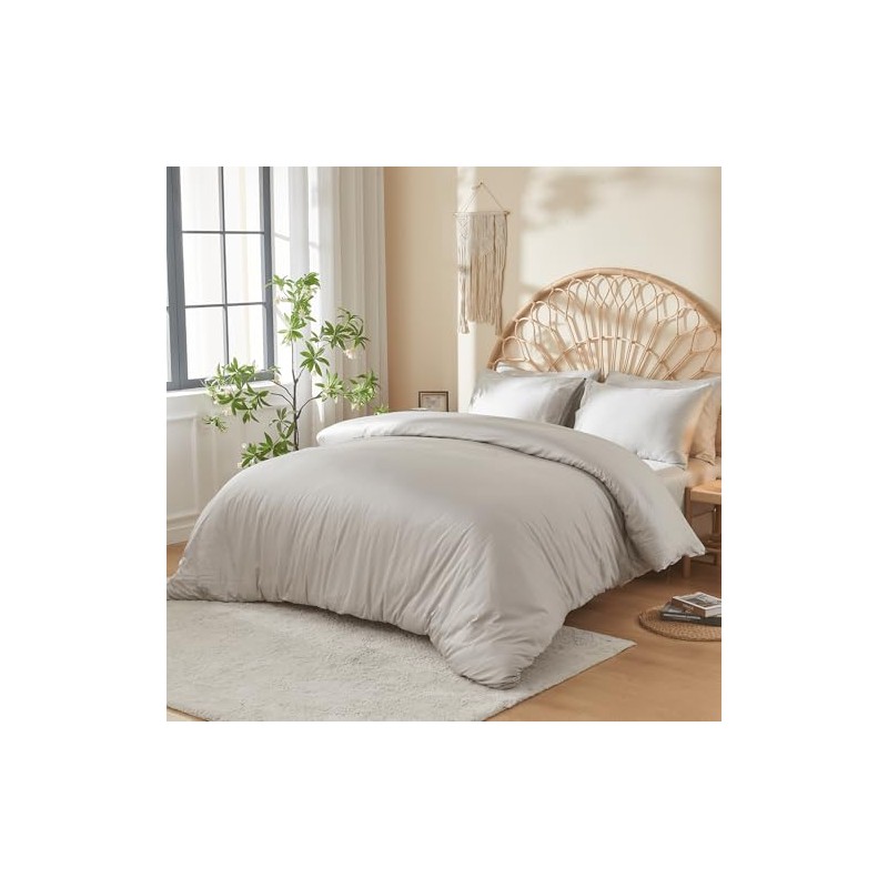 DOZ 100% Long Staple Cotton Duvet Cover Set, Soft Sateen Weave Cotton, Smooth, Breathable, Cooling Duvet Covers, Hotel Comfort, 90"x90", 8 Loops, 3pc – 2 Pillowcases 1 Duvet Cover (Dove, Full/Queen)