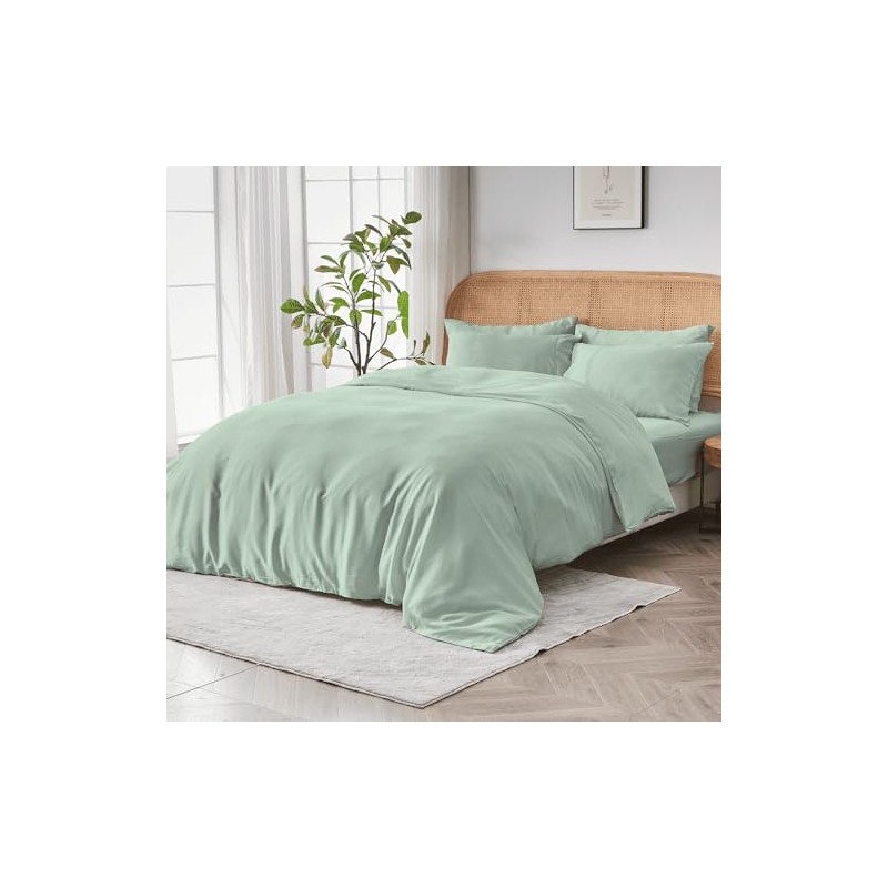 DOZ Duvet Cover Set, 100% Viscose derived from Bamboo, Organically Grown, Buttery Soft, Cooling Duvet Covers, High GSM, 1 Duvet Cover and 2 Pillowcases, 90"x90" (Sage, Full/Queen)
