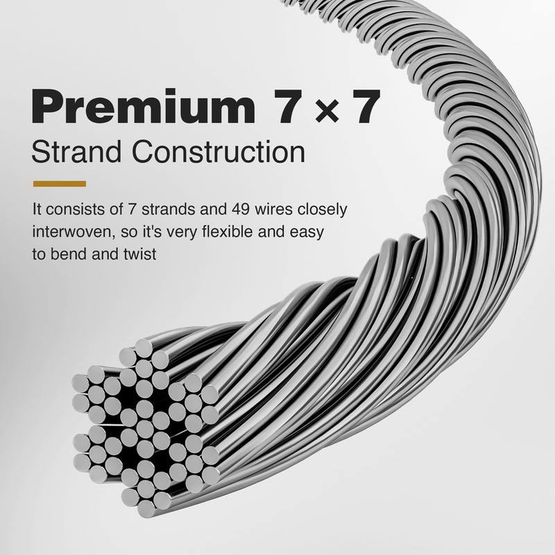 - Wide applications: 1000ft stainless steel cable wire rope, ideal for indoor and outdoor use. This versatile wire rope can meet various daily needs such as load hanging, plant support, stair handrails, string lights, clotheslines, shade sails and more