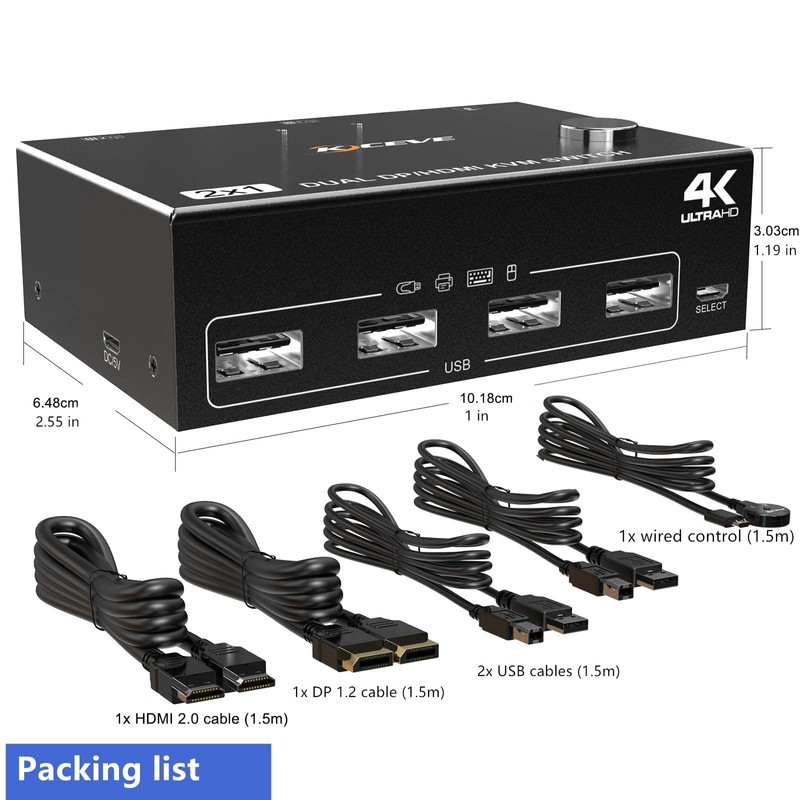 DP HDMI KVM Switch 2 Computer 2 Monitors, Dual Monitors Displayport USB KVM Switcher Supports 4K@60Hz for 2 Computers Share Keyboard, Mouse and Monitor