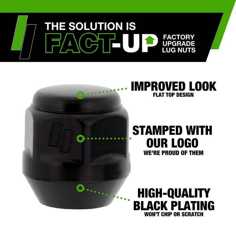 - A Real Problem Solver: OEM lug nuts wear over time, can swell, and are expensive to replace - FACT-UP solid steel one-piece replacement lug nuts have an upgraded plating and material
