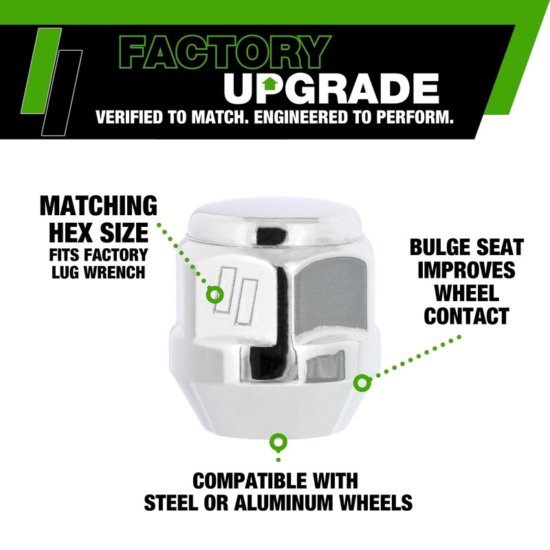 - A Real Problem Solver: OEM lug nuts wear over time, can swell, and are expensive to replace - FACT-UP solid steel one-piece replacement lug nuts have an upgraded plating and material