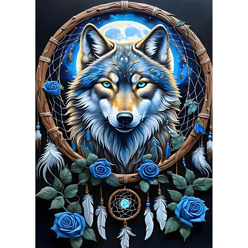 DPHERO Dreamcatcher Diamond Painting Kits for Beginners Adults,5D DIY Wolf Diamond Art Kits,Round Full Drill Blue Rose Gem Art Crafts Kits,DIY Painting by Numbers for Home Wall Decor 12x16 inch