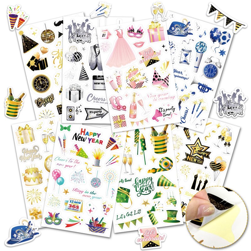 - 【Easy To Use】New Year decals stickers made of high quality paper, non-toxic, safe, self-adhesive stickers easy to peel, easy to stick on cup, water bottle, gift box, stationery, toys, furniture, books, cell phones and more.