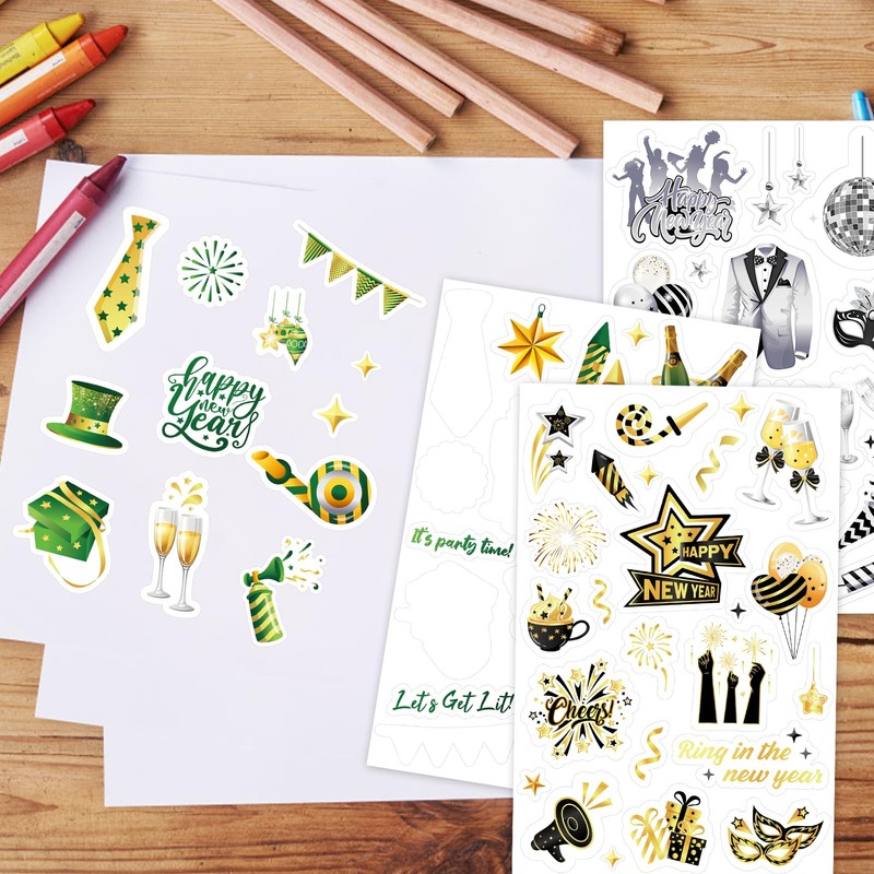 - Wide range of applications: New Year's Eve photo album stickers are suitable for homemade New Year scrapbooking, New Year art and craft supplies, homemade New Year photo albums, New Year jewellery, also for decorating doors, windows, suitcases, laptops, stationery boxes, desks, etc