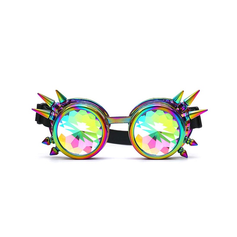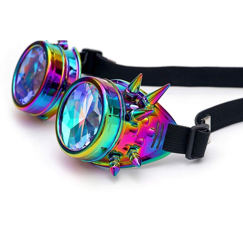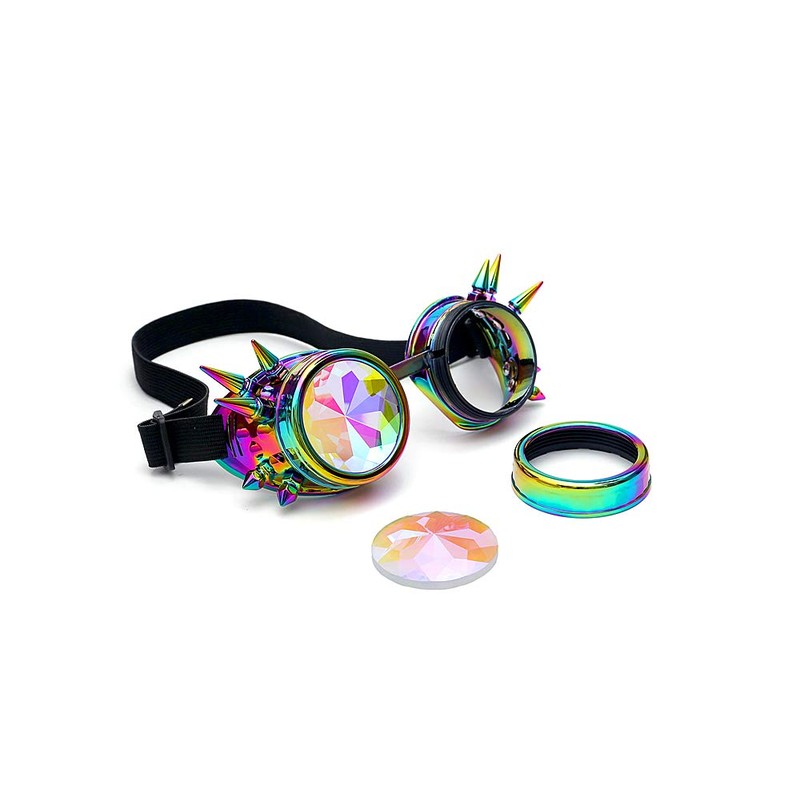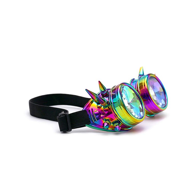 DPLUS Kaleidoscope Goggles - Steampunk Goggles with Spike Prism Steampunk Cyber Real Crystal Rainbow