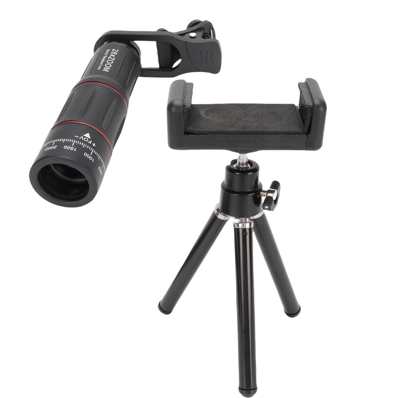 • Comprehensive Accessory Kit: The lens kit includes a telephoto lens, fisheye lens, wide angle lens, and macro lens, along with a flexible clamp, phone holder, eyecup, cleaning cloth, and a zippered storage bag.
