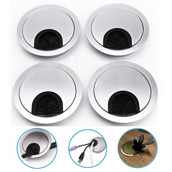 Dproptel 4 x 60mm Desk Table Grommet Cable Tidies Desk Caps Desk Surface Port Hole Covers (Brushed Chrome)
