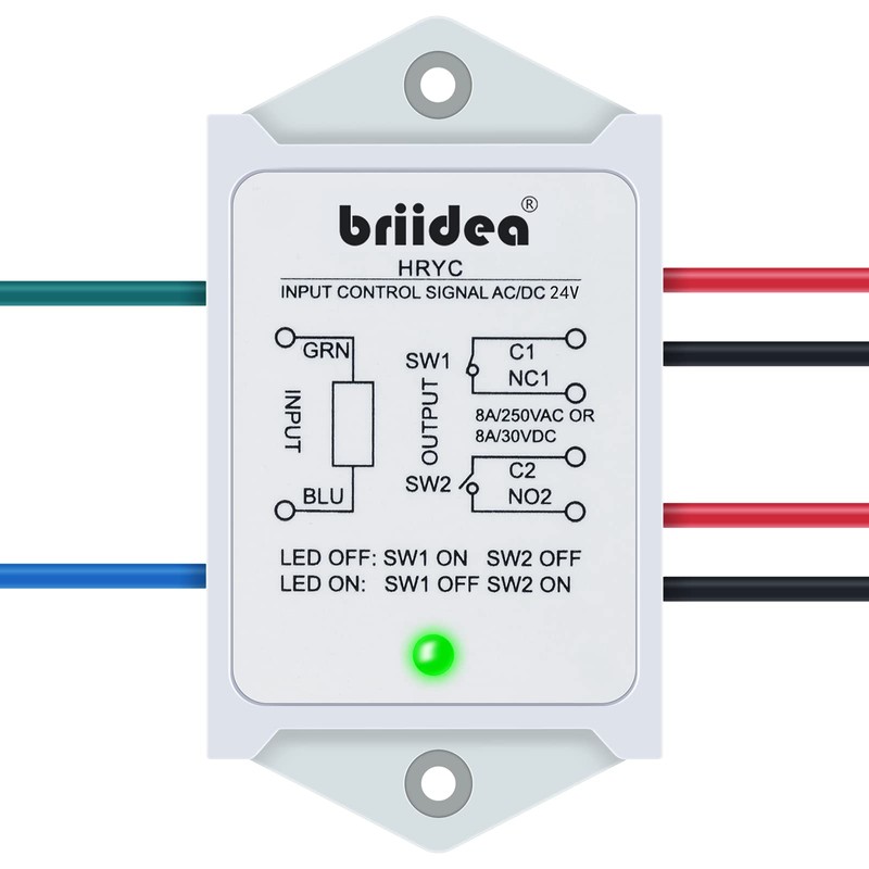 DPST 1NO 1NC 8Amp Power Relay Module, Briidea 24V AC/DC Power Relay Control Voltage, White