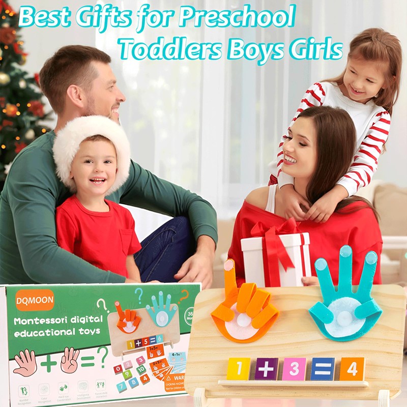 DQMOON Montessori Toys for 3 4 5 Year Old, Preschool Learning Toys for Toddler 2-5, Educational Math Manipulatives Number Counting Blocks for Kids, Birthday Gifts Xmas Stocking Fillers Finger Math Toy