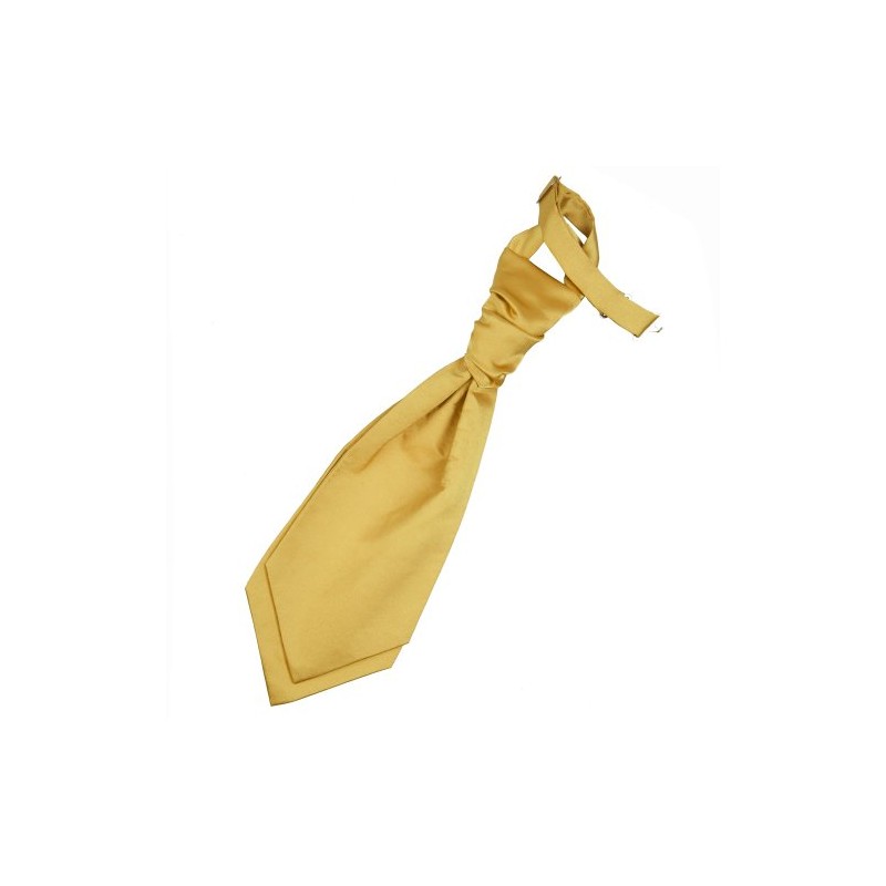 DQT Plain Satin Wedding Pre-Tied Scrunchie Cravat Tie for Boys - Gold