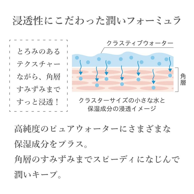 - Features: Beauty water that focuses on the moisture of the skin itself. The penetrating moisturizing penetrates moisture to the corners of the corners and enhances the beauty of your skin.