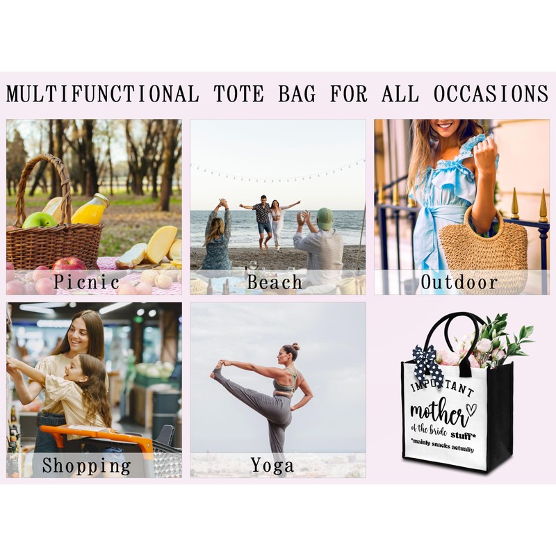 Dr.Baner Mother Of The Bride Tote Bag For Women, Canvas Tote Bag For Wedding Bachelorette Party, Mother Of The Bride Tote Bag With Ribbon, Beach Bag Gifts For Bridal Shower Wedding Friends -35