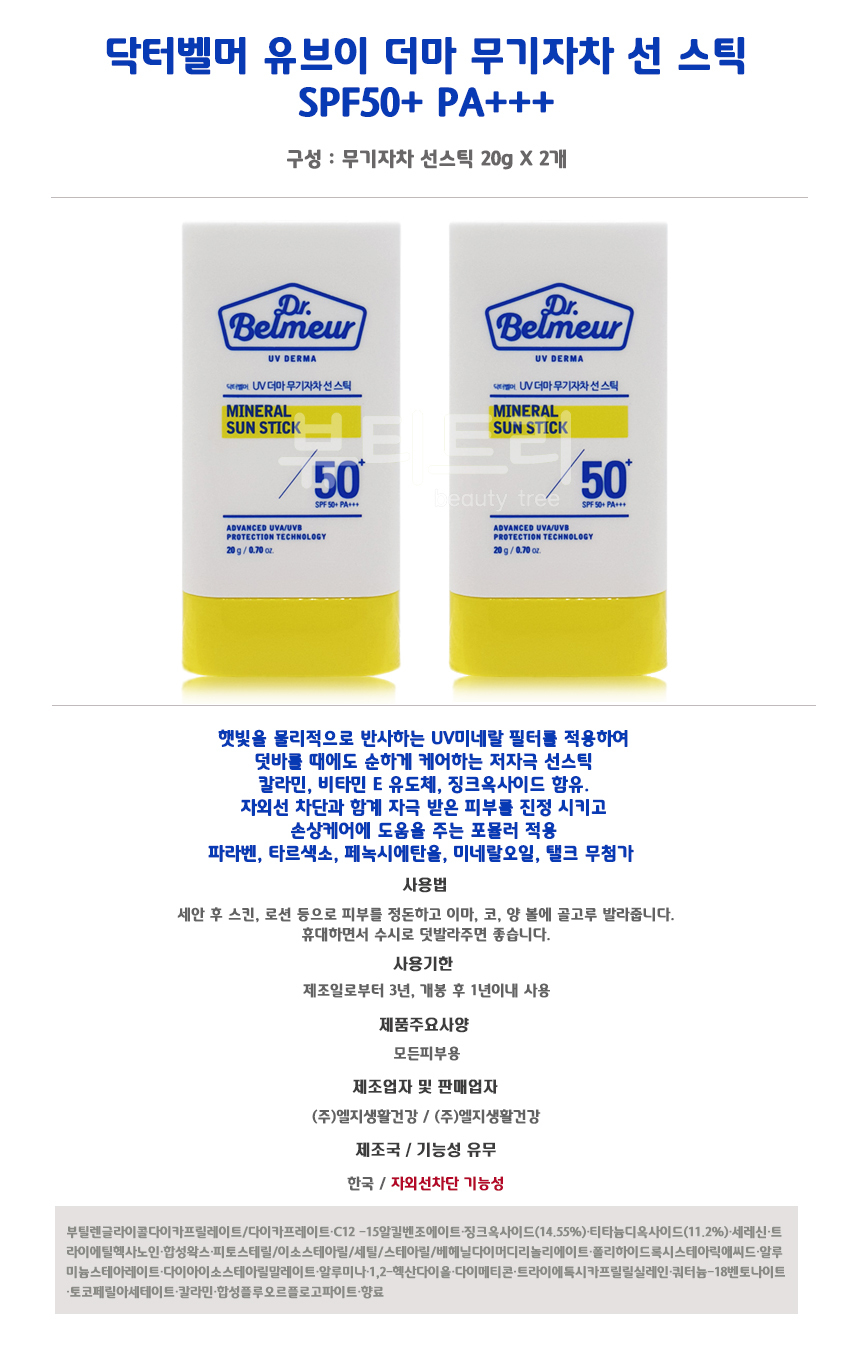 Dr. Belmer UV Derma Mineral Sun Stick 20g + 20g / 닥터벨머 유브이 더마 무기자차 선스틱 20g + 20g