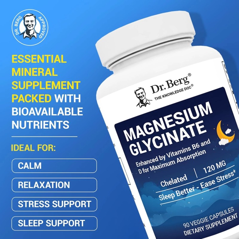 Dr. Berg Magnesium Glycinate with Vitamin D, B6 & Zinc 90 Count (Pack of 1)