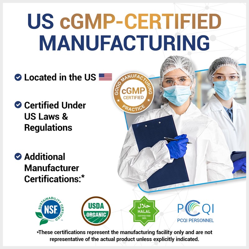 - - Our state-of-the-art manufacturing facilities are located in the US and are staffed with highly trained individuals who formulate superior products. Being certified under US laws and regulations (GMP Certified), these facilities are uncompromising when it comes to cleanliness and quality control.