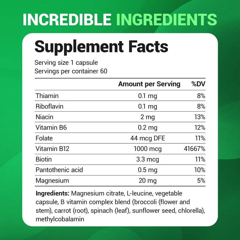- Optimized Nutrition: This powerful formula supports cognitive function, enhances energy metabolism, supports healthy red blood cell production, and promotes nervous system health*