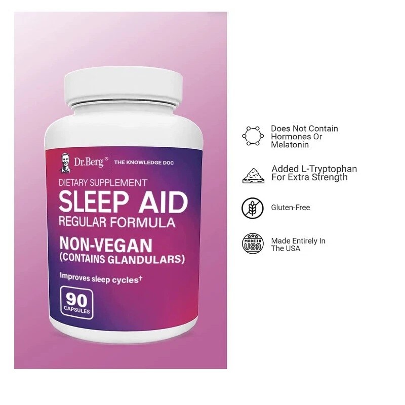 Dr. Berg Sleep Aid Regular Formula β Natural Support for Deep Sleeping Cycles - Fatigue and Stress Support Capsule Helps Calm Body and Mind β Best Non Habit Forming Supplements 90 Capsules