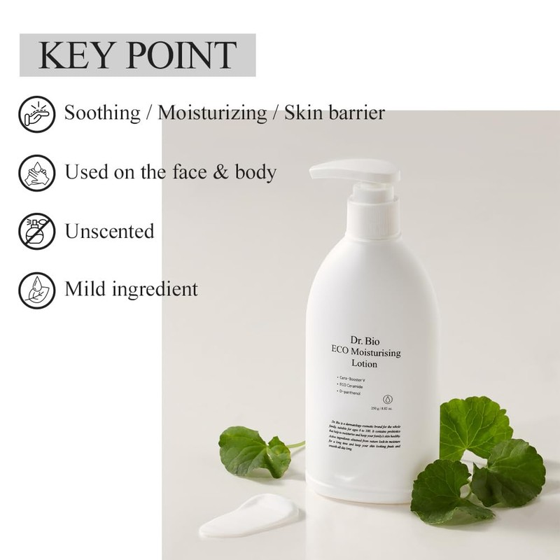 Dr. Bio Eco Moisture Lotion 250ml - Daily Face & Body Moisturizer, Fast-Absorbing Cream for Sensitive & Dry Skin, Hypoallergenic for All Ages