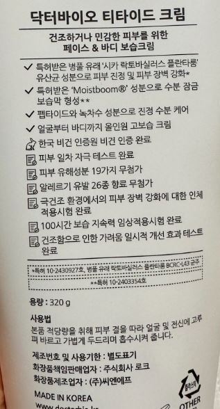 Dr. Bio Titaide Cream 320g 1 piece Face and Body Cream 100-hour Moisturizing for Pregnant Women, Newborns, Infants, Toddlers, Children, and Adults / 닥터바이오 티타이드 크림 320g 1개 페이스 바디크림 100시간보습 임산부 신생아 영아 유아 어린이 성인