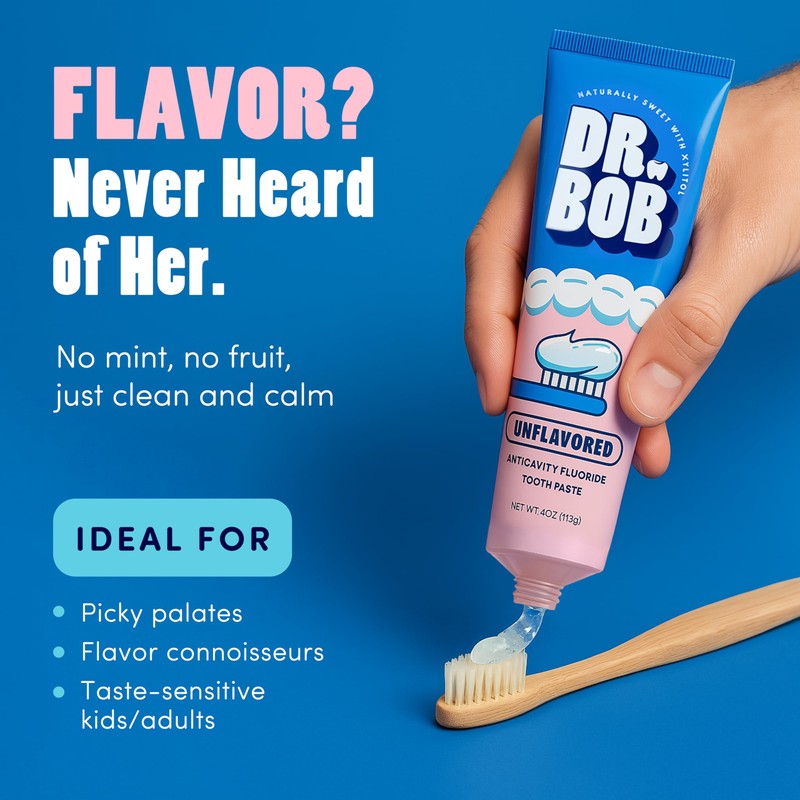 Dr. Bob Unflavored Anticavity Fluoride Toothpaste for Kids, Dentist-Recommended Toothpaste Gel with Xylitol for Sensitive Teeth, SLS-Free, Children and Adult Oral Care, 4 oz., 1-Pack