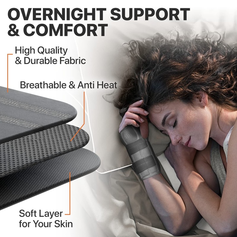 - Carpal Tunnel Wrist Brace Night Support Left Hand - Offering 360 Degrees of Unmatched Protection. Our unique design incorporates adjustable straps, a form-fitting pillow cushion, and ergonomic splints for comprehensive support. Ideal for daily use, physical activities, and overnight wrist care. Ultimate protection for maximum relief and comfort