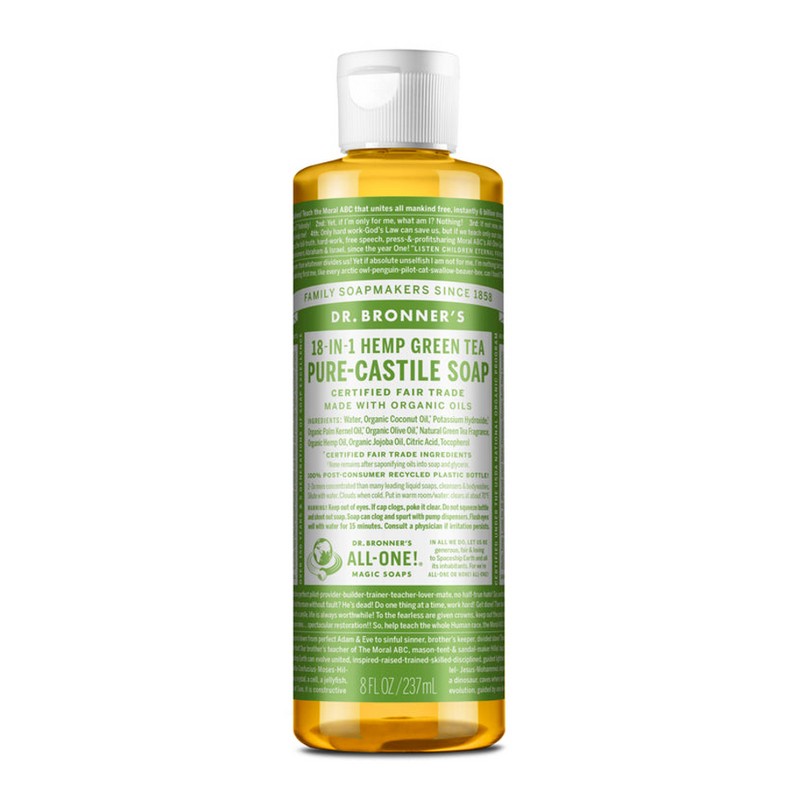 Dr Bronners has created the Green Tea Liquid Soap which is formulated with an invigorating blend of organic extra virgin coconut oil, olive oil, jojoba and hemp oils. This Green Tea soap is made with certified fair trade ingredients and organic hemp oil for a soft, smooth lather that won’t dry your skin.