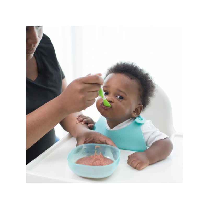 Scoop-a-Bowl grows with baby, keeping dry foods inside the bowl and acting as a splash guard as your toddler gets better at grabbing food and using utensils on their own. The wide design of the Scoop-a-Bowl helps prevent tips and spills for less-mess meals.