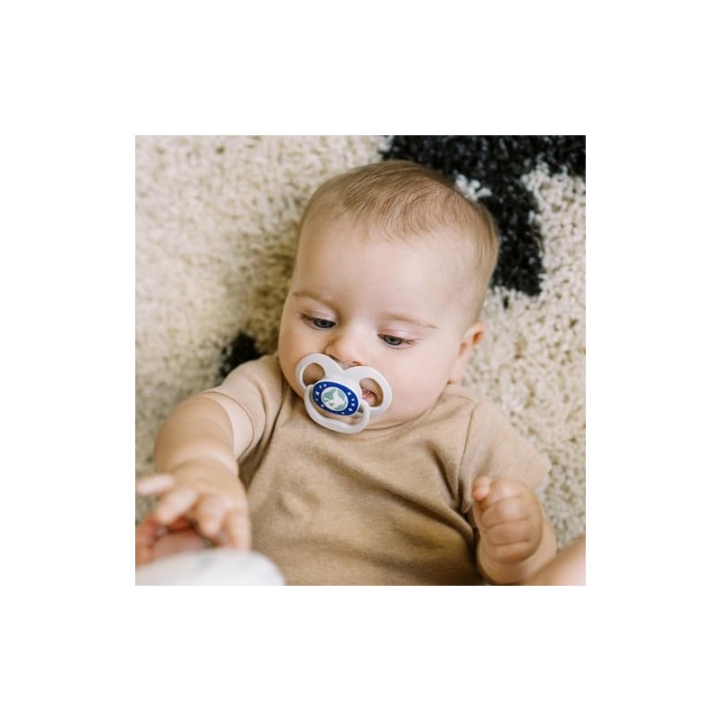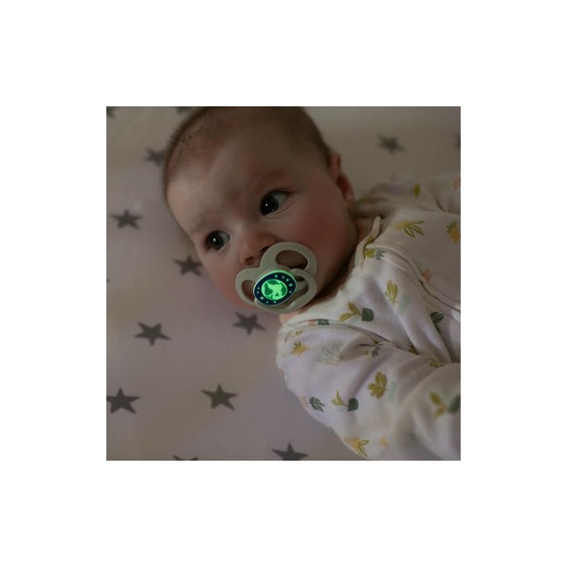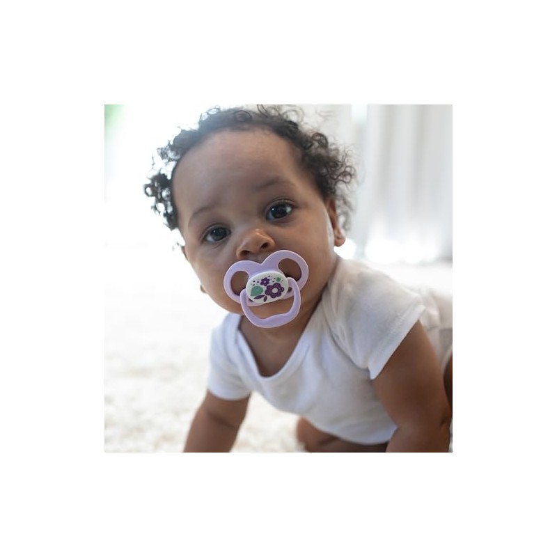 Dr. Brown's Advantage Pacifier is designed with baby's acceptance in mind. The Advantage Pacifier is a fully symmetrical soother, with a reversible bulb that can be placed in baby's mouth in either direction. The 100% silicone bulb is soft yet sturdy with a round shape that satisfies baby's suckling reflex. A unique open shield design reduces irritation by providing plenty of air for baby's sensitive skin to breathe. Plus, the fun design is glow-in-the-dark making it easy to find in the dark for nighttime soothing. Advantage Pacifiers come in two stages as baby grows C 0-6m features a smaller bulb and shield for newborns. As baby grows, they can move up to the 6-18m stage, a slightly larger version of the same soothing design. Taste-free, odor-free, and BPA-free. Dishwasher (top rack) and sterilizer safe.