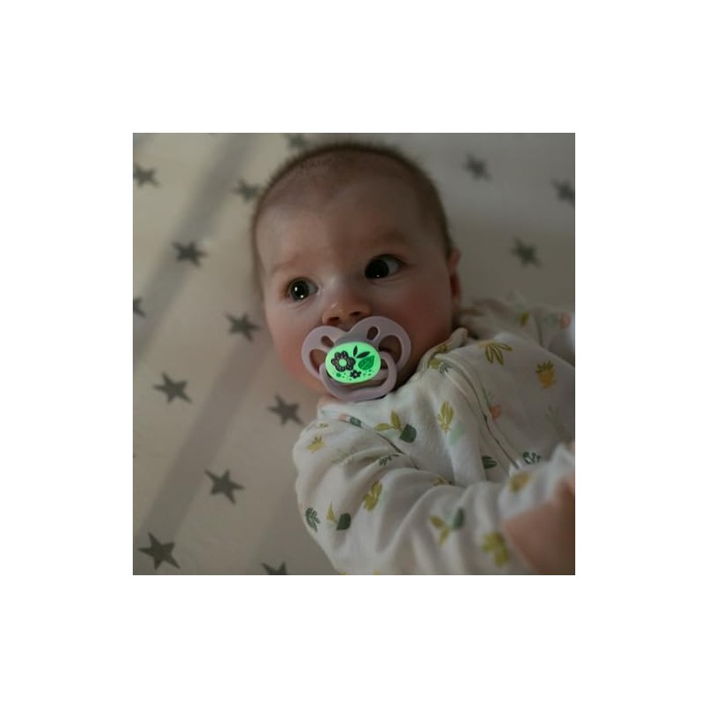 Dr. Brown's Dr. Brown's Advantage Glow-in-the-Dark Baby Pacifier, Fully Symmetrical Soother with Soft Silicone Bulb, Purple Nature, 6-18m, BPA Free, 2 Pack