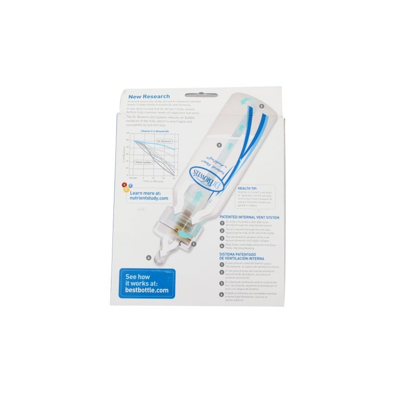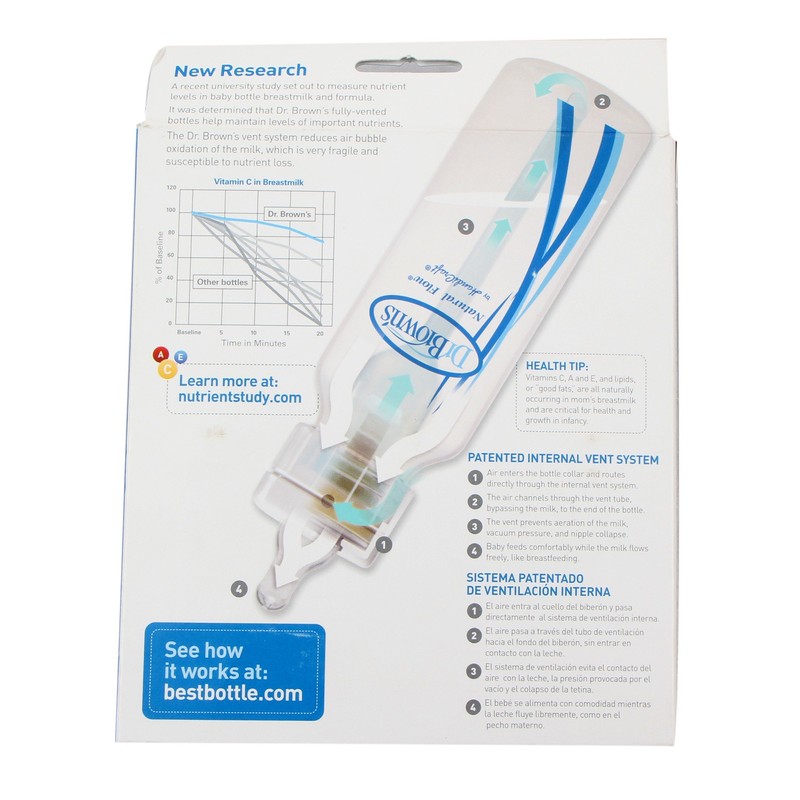 The patented Natural Flow internal vent system is the only vent that eliminates the vacuum and the air bubbles found in most baby bottles. It allows air to enter through the nipple collar without being incorporated into the breast milk or formula.