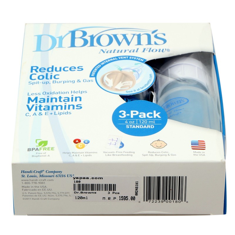 Dr. Brown's Natural Flow BPA Free Polypropylene Bottles, 4 oz 3 ea