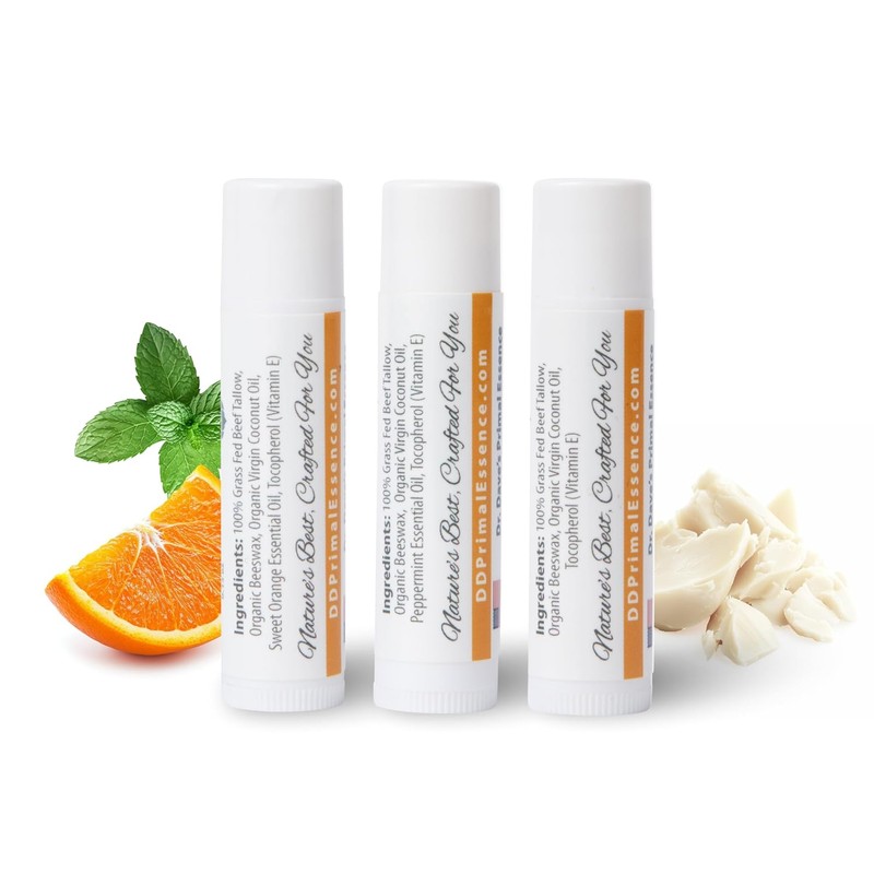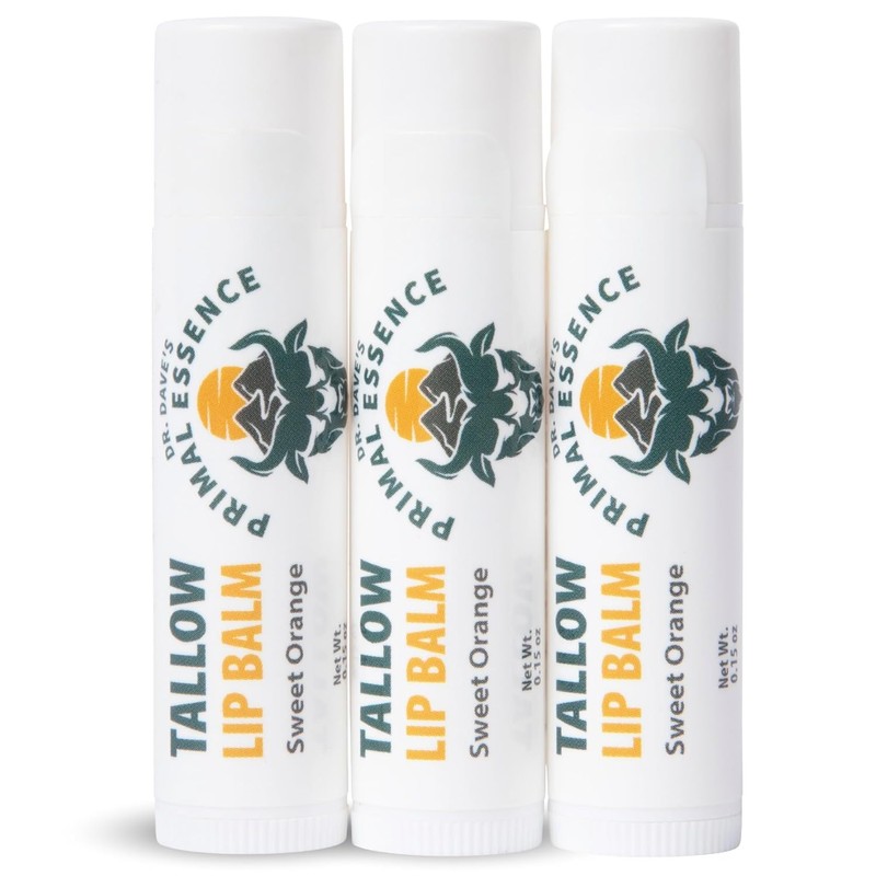 Moisturizing Tallow Lip Balm – Grass-Fed Beef Tallow with Organic Coconut Oil, Beeswax, and Vitamin E – Sweet Orange – Lip Balm Set – Travel Essential – 3-Pack
