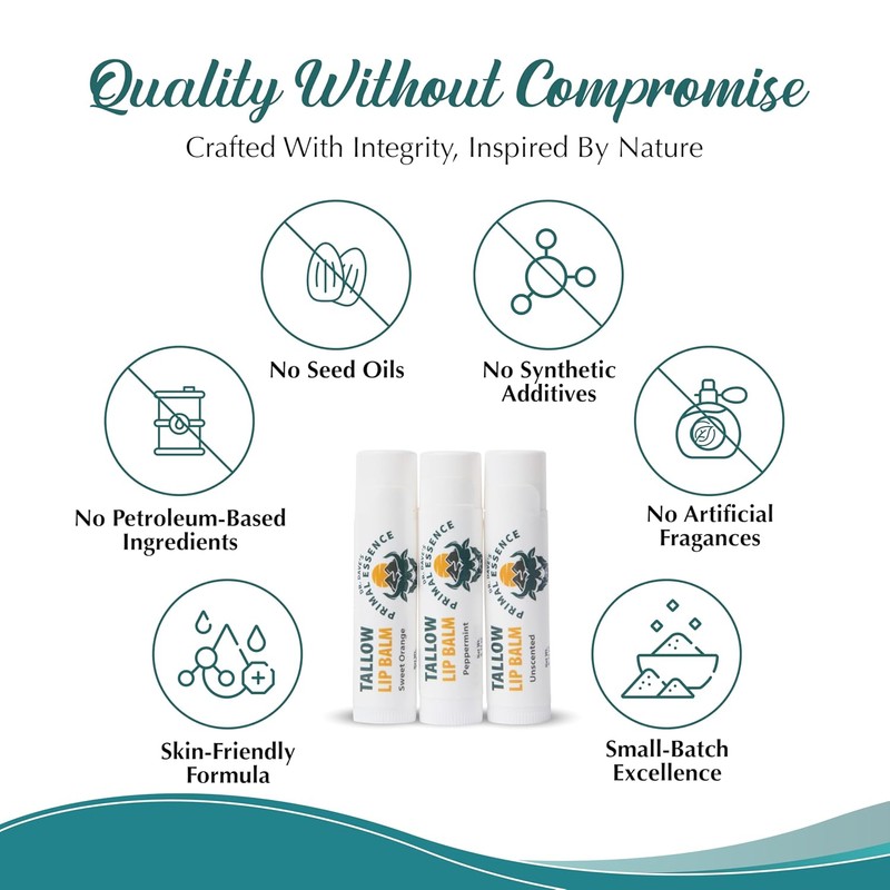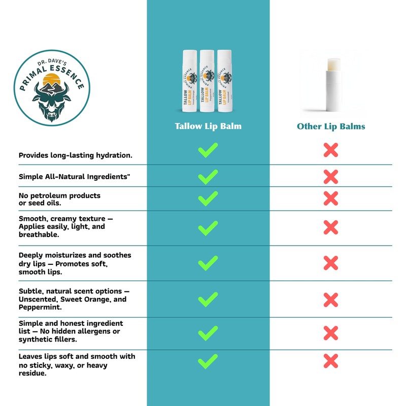 Moisturizing Tallow Lip Balm – Grass-Fed Beef Tallow with Organic Coconut Oil...