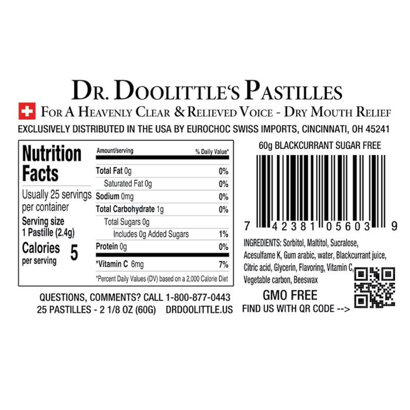 Dr. Doolittle’s Sugar Free Soft Fruit Pastilles for Voice and Throat, Blackcurrant Flavor, 2.12 Ounce Tin, approximately 25 Count Package