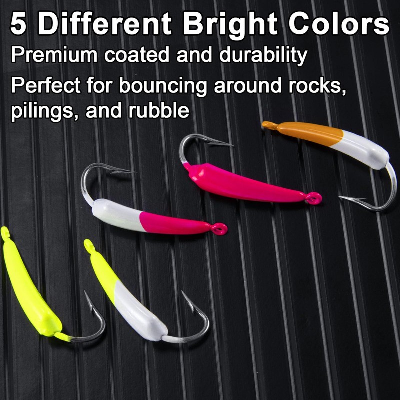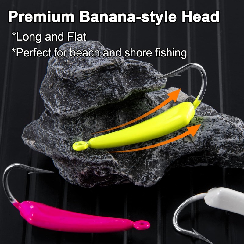 - The unique design of our pompano jig, shaped like a banana, mimics a sand flea jigging up off the bottom and then falling back down. This realistic movement attracts pompano and increases your chances of a successful catch.