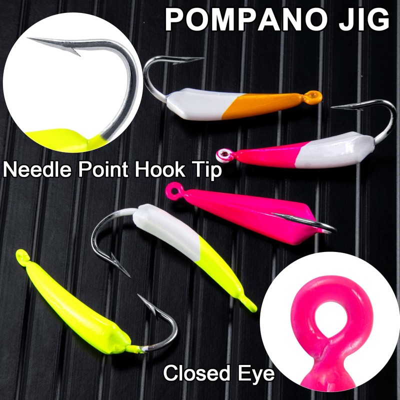 - Our Pompano Jigs feature high-carbon steel hooks that offer exceptional strength and durability. With their sturdy construction, these hooks can withstand the toughest fishing conditions, providing you with a reliable tool for all your fishing adventures.