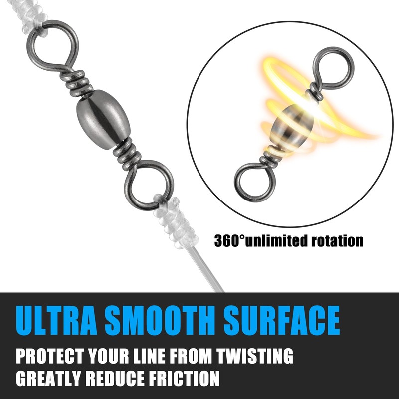 Dr.Fish 100 Pack Fishing Swivels Barrel Swivels Stainless Steel Copper Solid Ring Swivels Fishing Tackle Connector Black Nickel 60LB